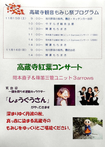 いよいよ11月より紅葉シーズン到来、高蔵寺観音もみじまつりを開催致します